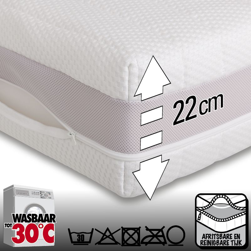 Tijkstof:100% Bacterie werende Eco-tex Aegis-Prestige dubbeldoeks Jersey, afritsbaar en machine wasbaar 30oC