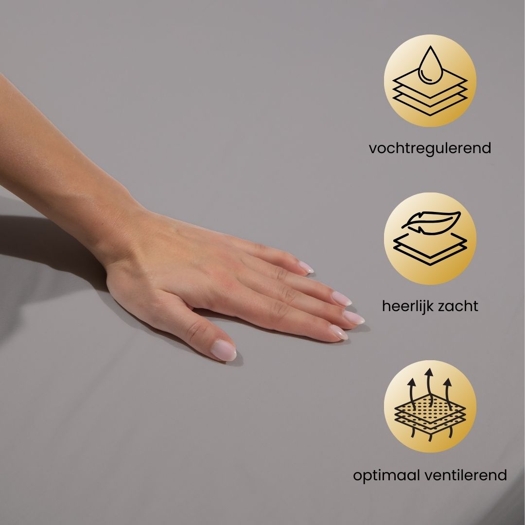 - Duurzaam en Makkelijk te Onderhouden: Machinewasbaar tot 60°C en dankzij de krimpvrije stof blijft de pasvorm behouden. Het hoeslaken is ook strijkvrij, wat het onderhoud gemakkelijk maakt.