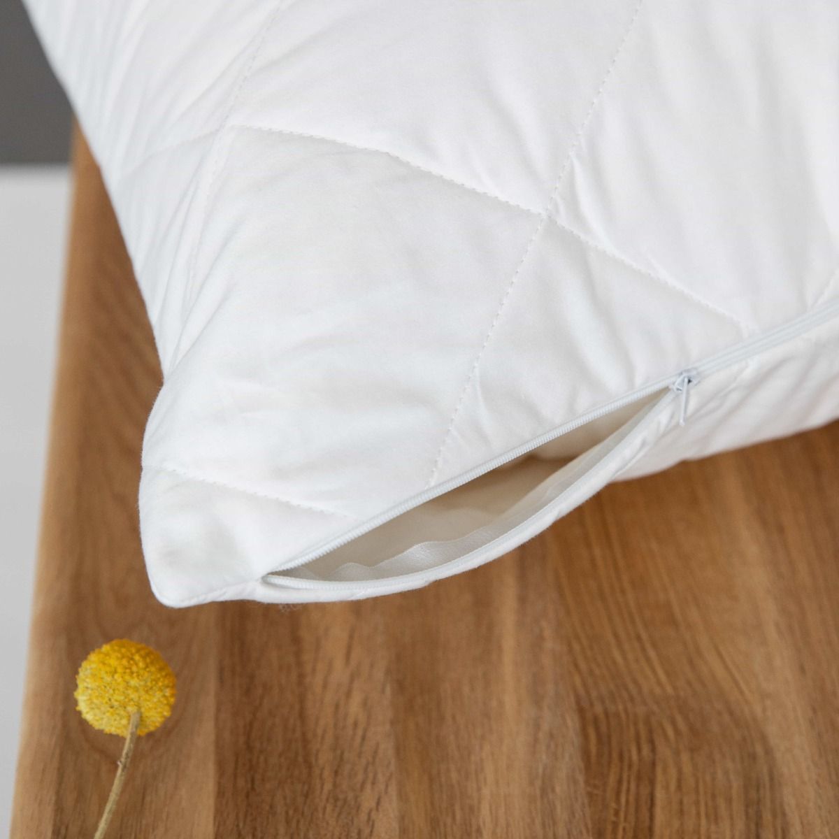Dit hoofdkussen is in dikte aanpasbaar aan uw persoonlijke slaapwens, door rits en losvlokkige vulling.