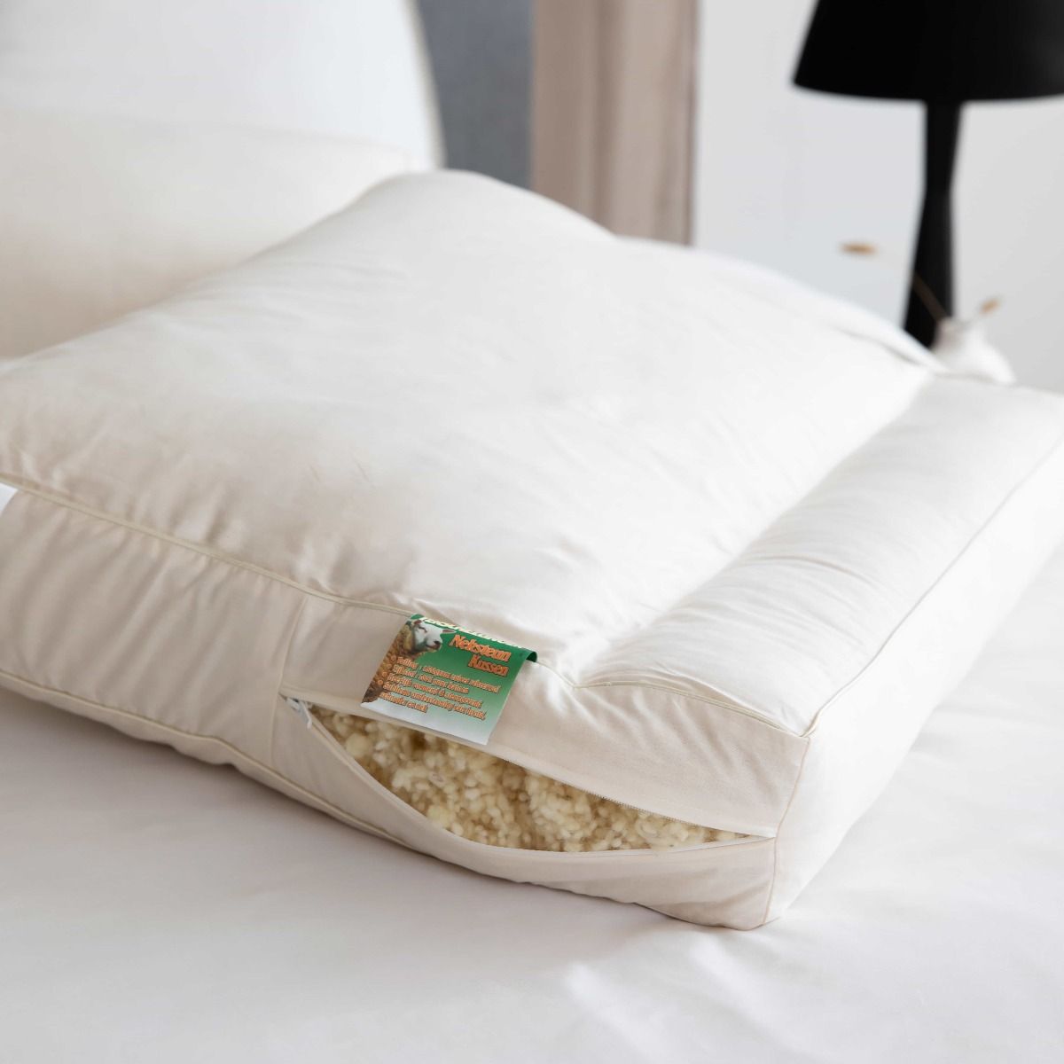 Deze luxe Wollen neksteun kussens worden geleverd in ’n ademende draagtas, waarin u het kussen stofvrij, fris en ademend opbergt.