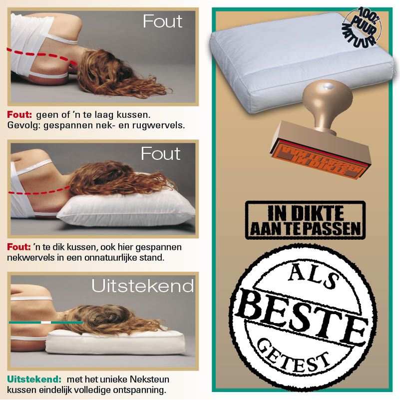 U heeft last van uw nek of hals, of voelt zich stijf na het opstaan? Dít kussen helpt! Het Terschellinger Neksteunkussen zorgt, door haar speciale vorm, voor perfecte steun in de nek tijdens uw nachtrust.