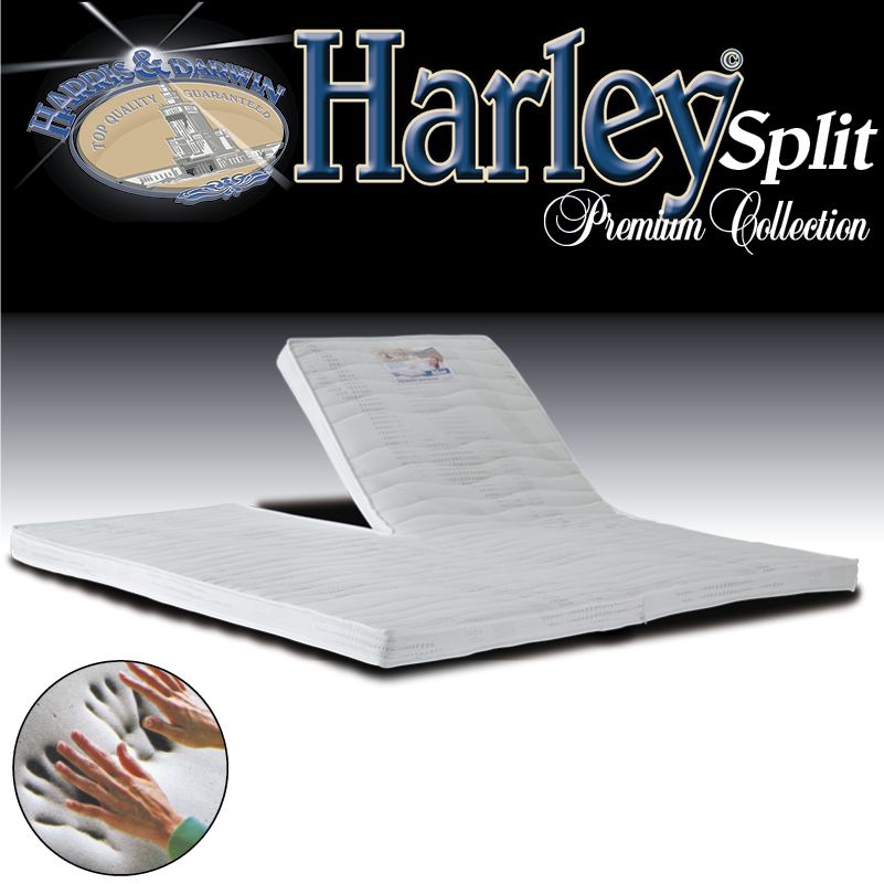 Deze Nasa Split-topper maakt slapen tot ! U voelt geen enkele druk; het lichaam wordt weldadig gedragen. Werkelijk een wereld uitvinding van NASA. Harley© is een fantastisch drukverlagend Visco-elastische Split oplegmatras. De open celstructuur zorgt voor ventilatie en voorkomt vochtophoping.
